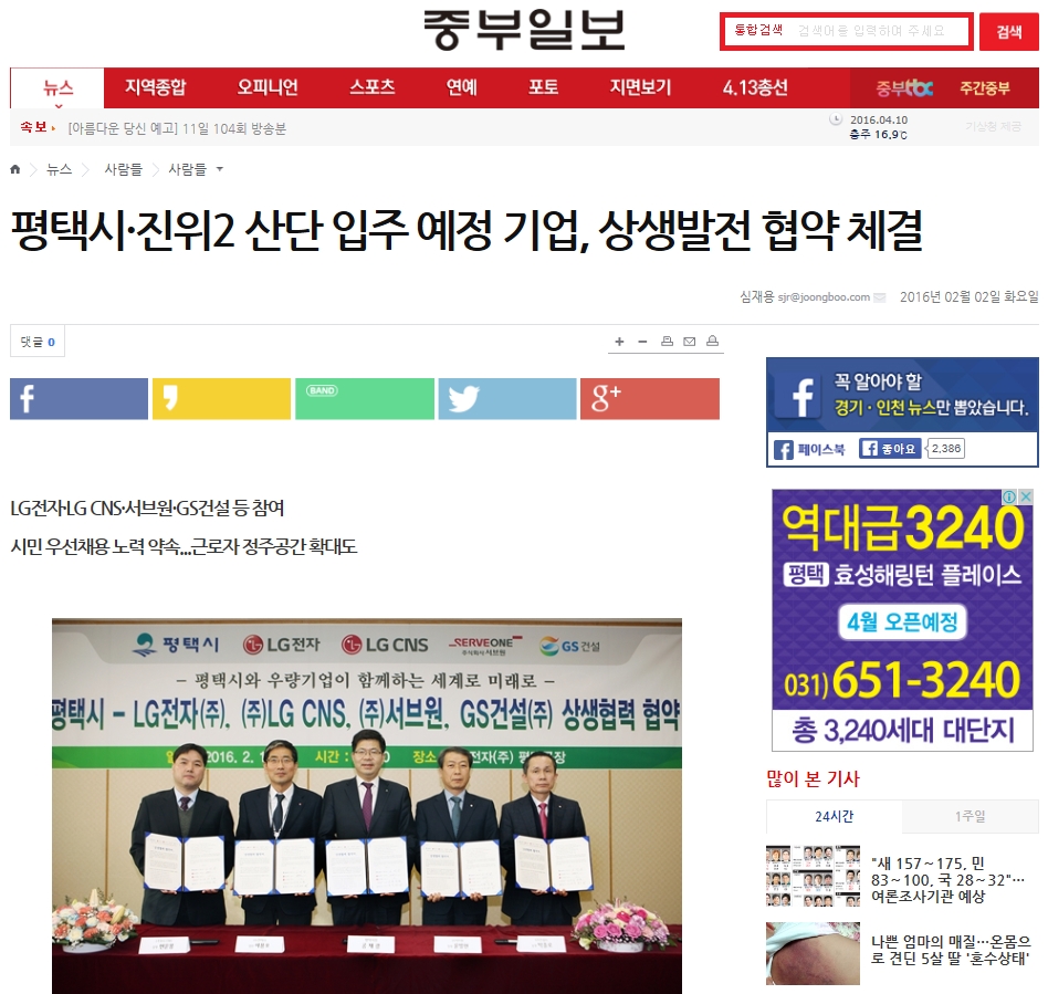 전자신문 - 평택 진위 ‘서희스타힐스’ 지역주택조합아파트 조합원 모집